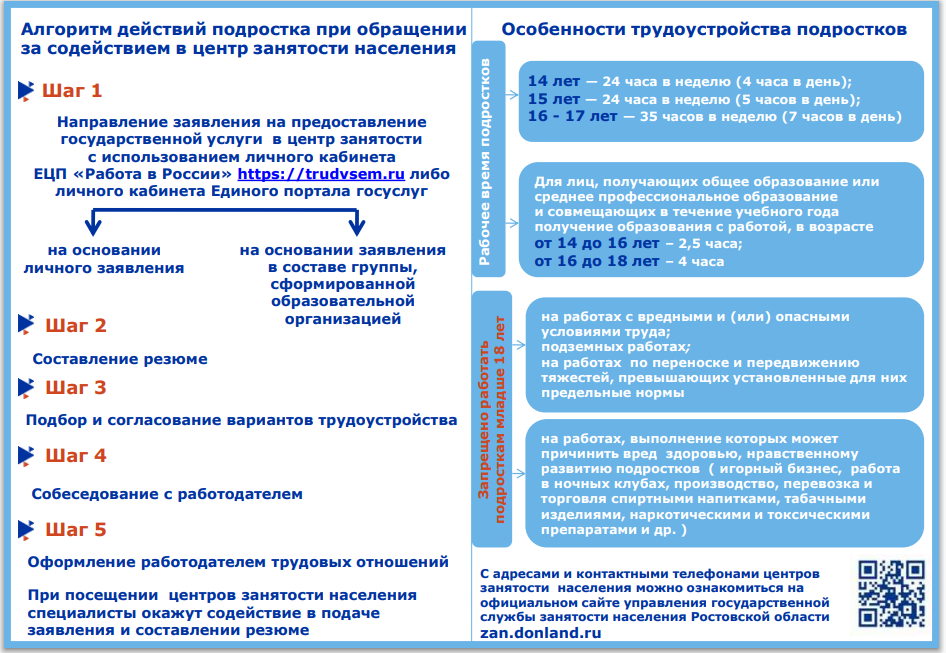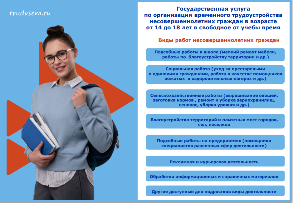 памятка «Государственная услуга по организации временного трудоустройства несовершеннолетних граждан в возрасте от 14 до 18 лет в свободное от учебы время».